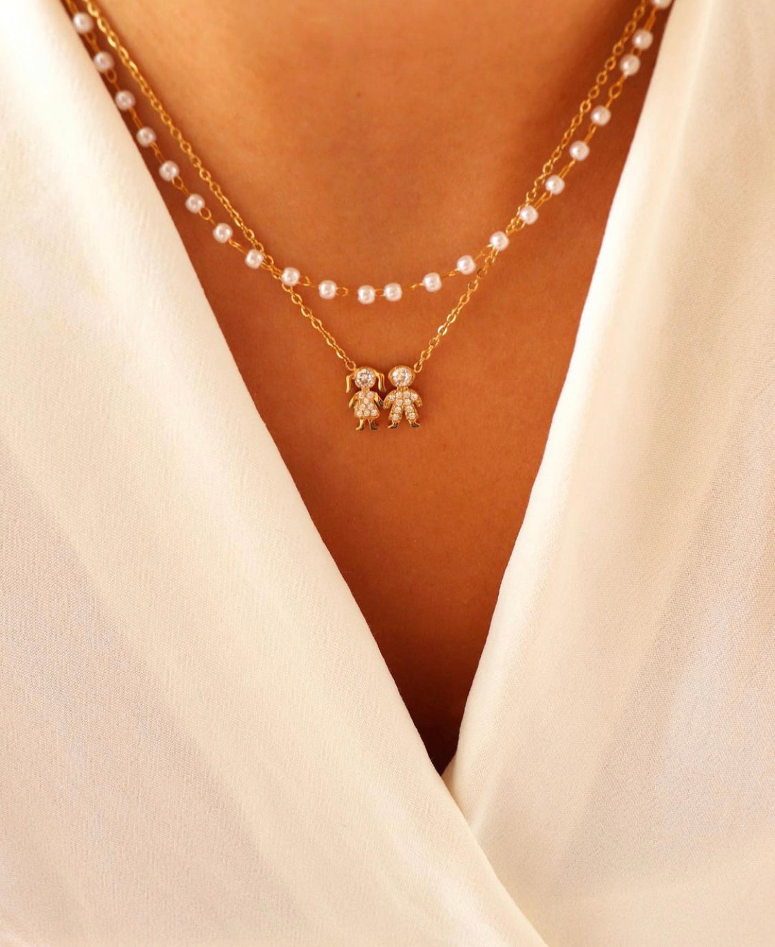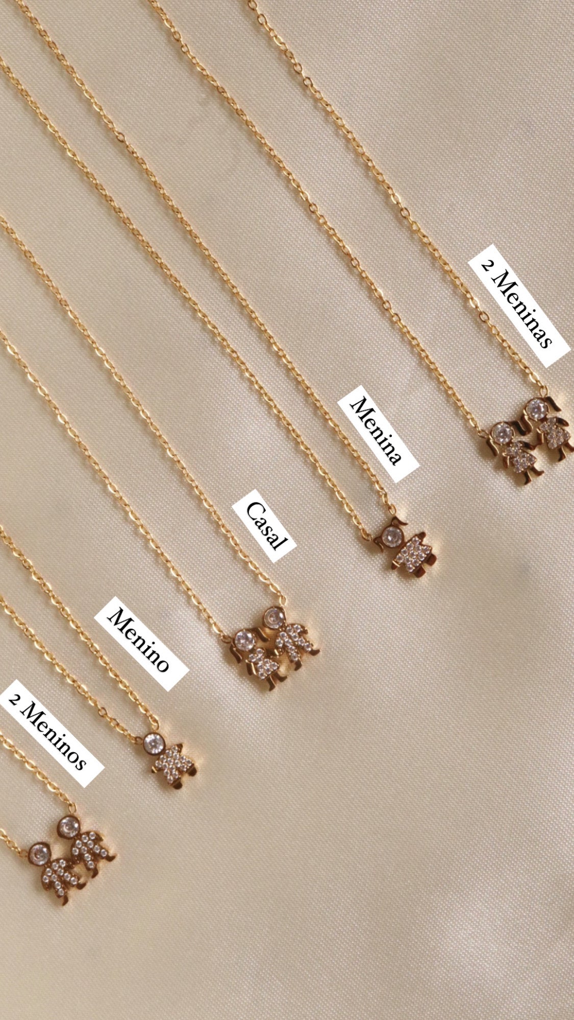 Aço Inoxidável. Conjunto composto por Colar Pérolas + Colar Filhos (Casal, Menino, Menina, Dois Meninos ou Duas Meninas).