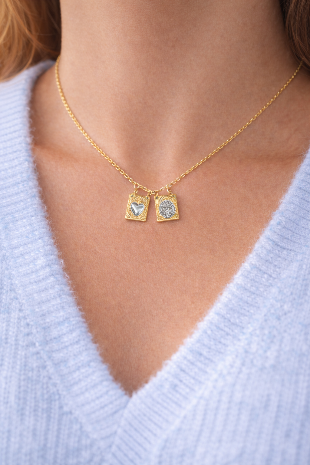Escapulário em aço inoxidável. Feito à mão.