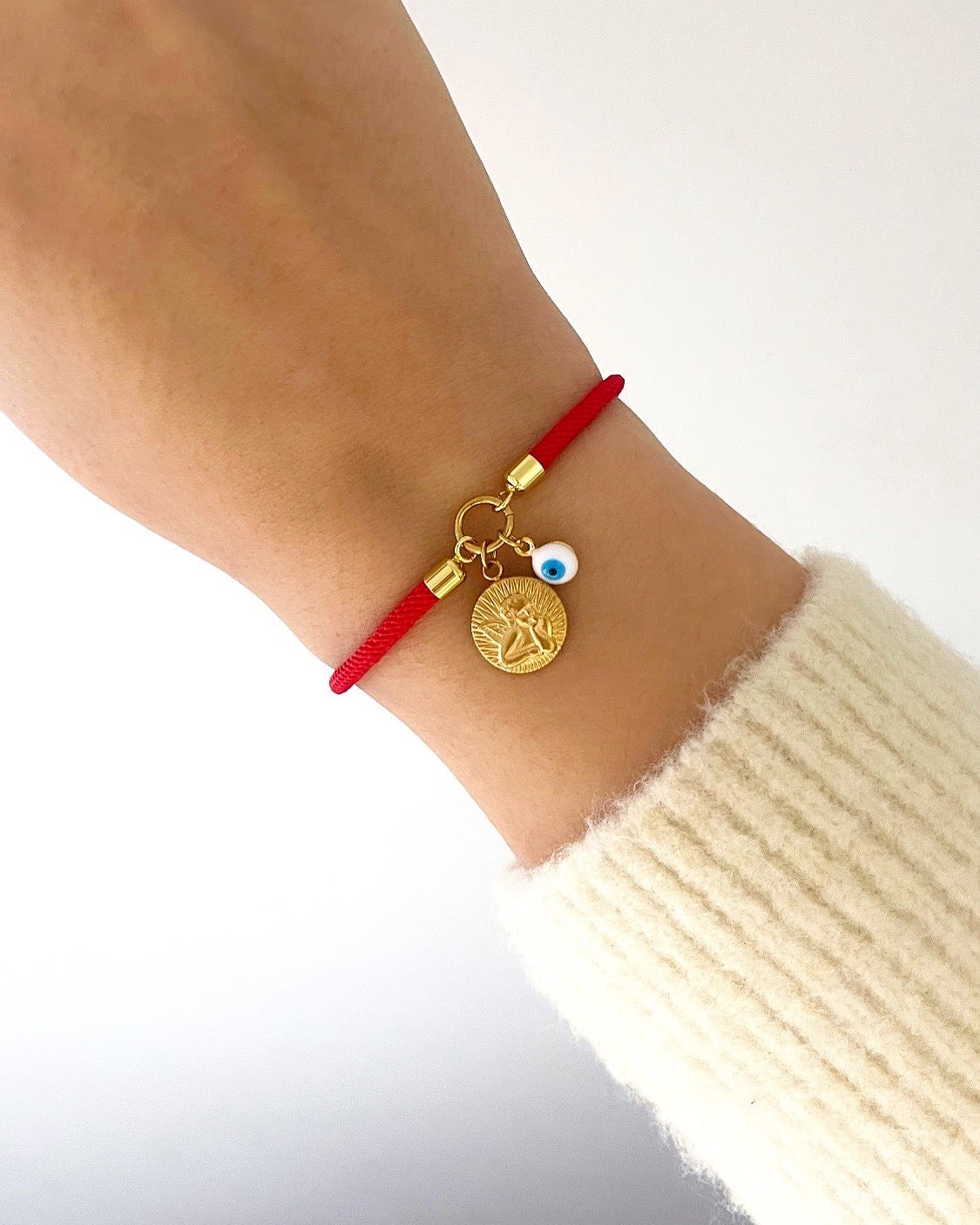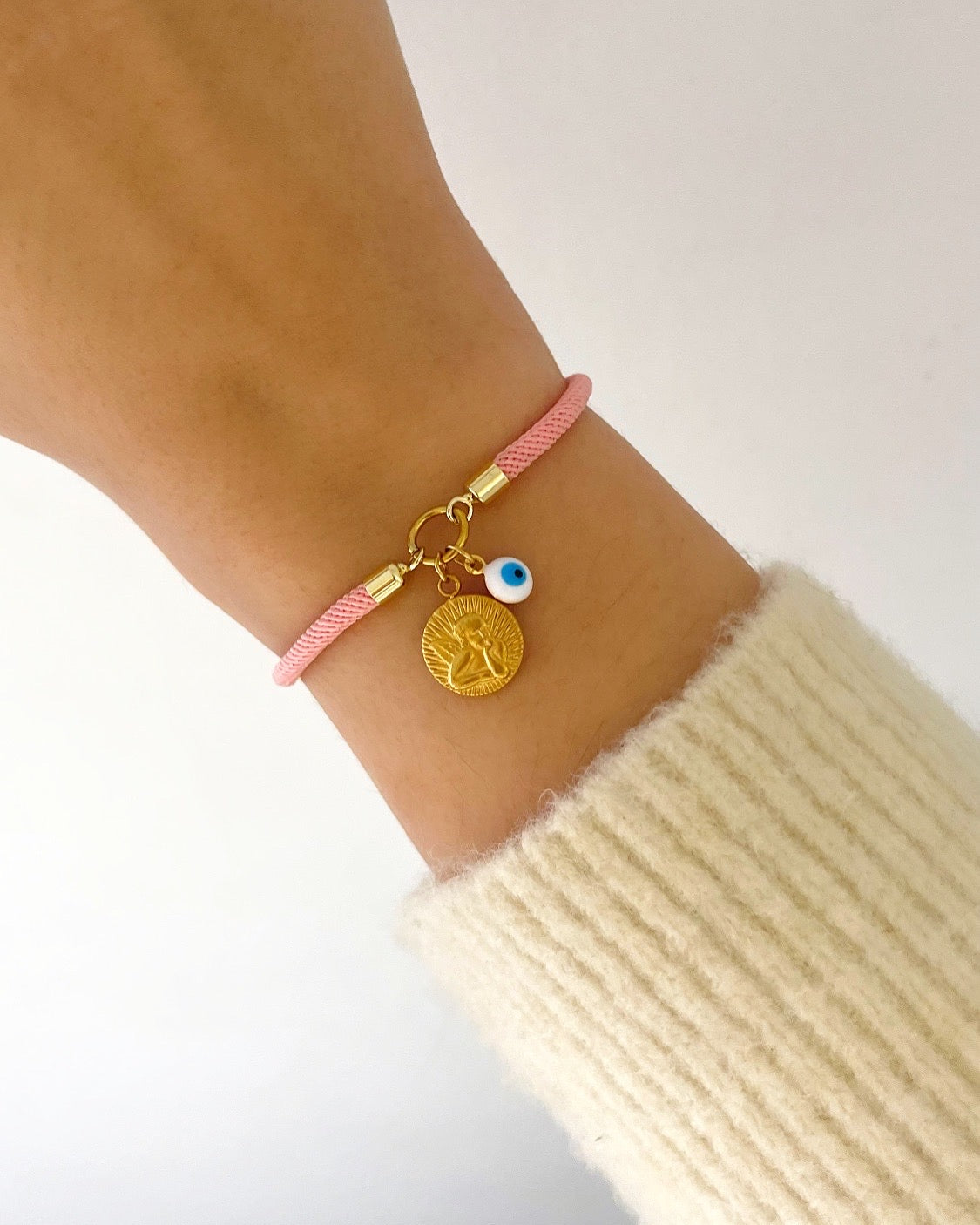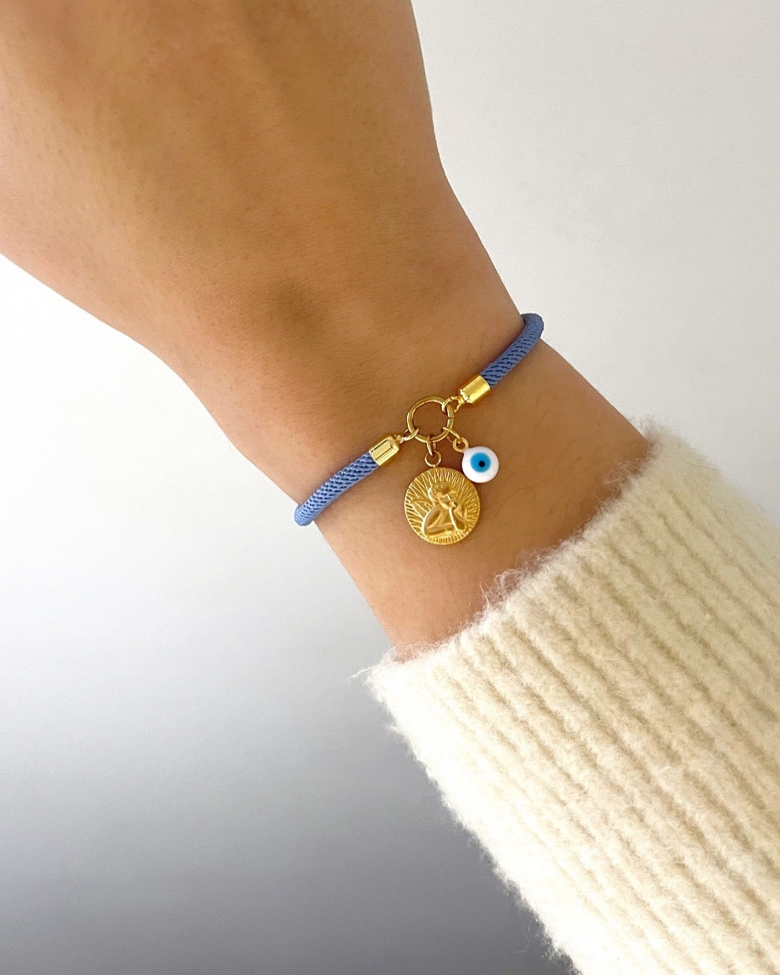 A pulseira com o anjo da guarda e o olho grego é o amuleto perfeito para estares sempre protegida